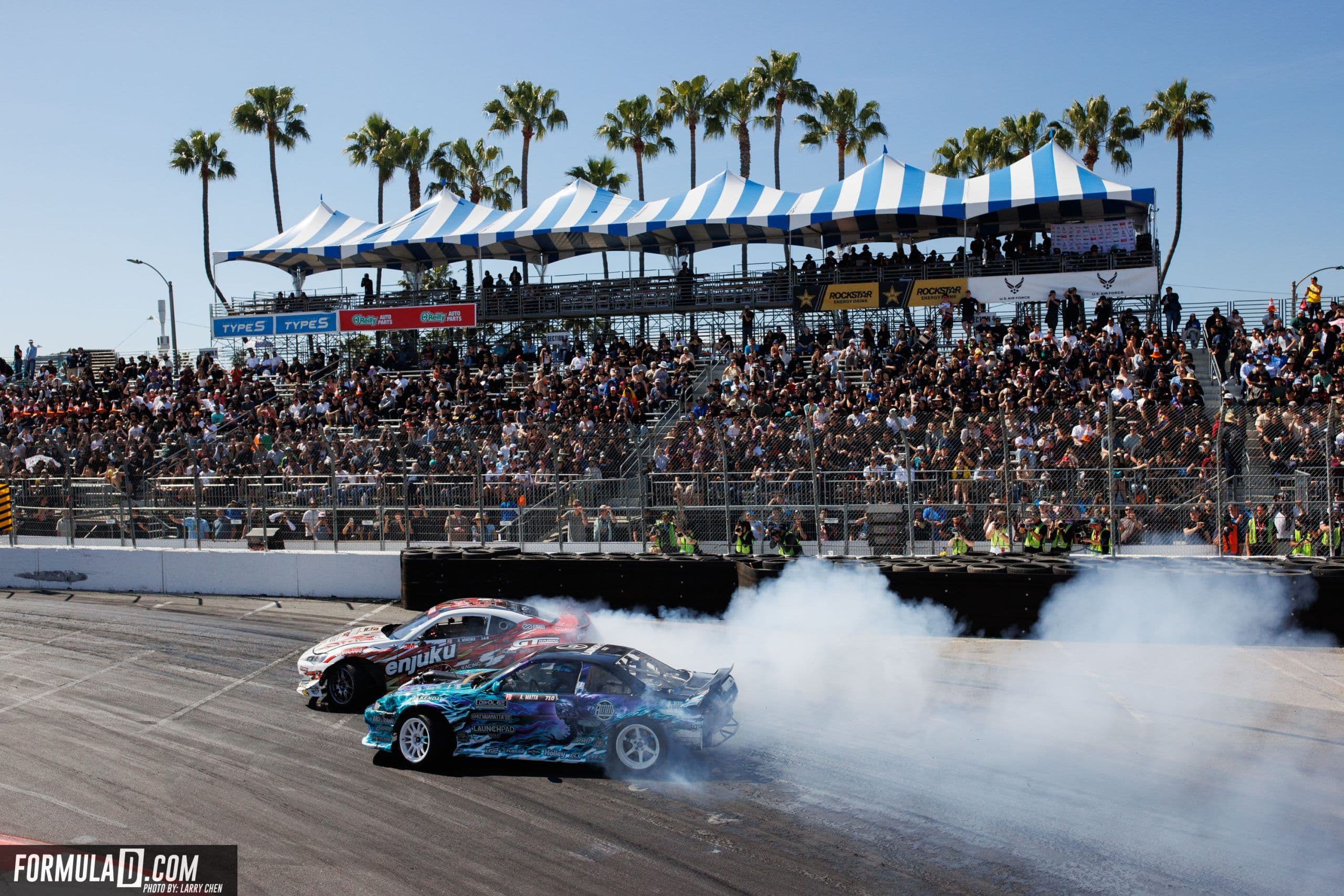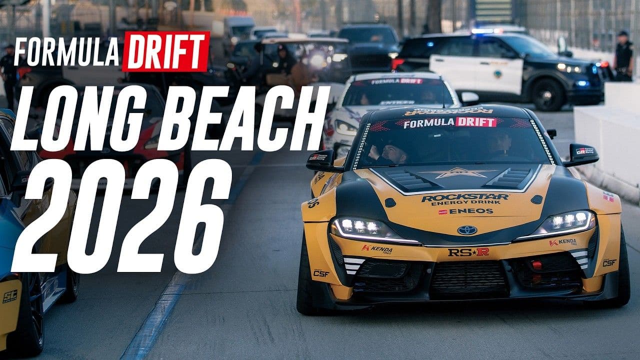 Formula Drift 2026 kicks off in Long Beach on April 10-11, where drivers set the season's tone with full send entries, door-to-door tandems, and nonstop tire smoke from the first run.